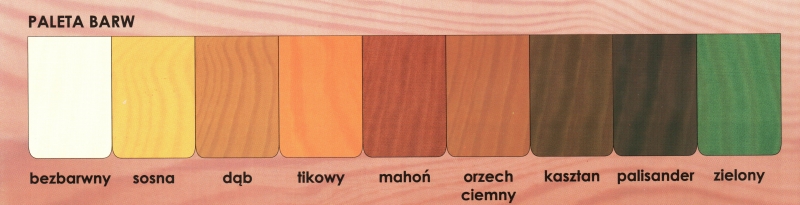 Zachowuje i podkreśla naturalny rysunek drewna chroniąc go jednocześnie przed działaniem czynników atmosferycznych, sinizną i grzybami. Posiada krótki czas schnięcia i wysoką odporność na sklejanie.