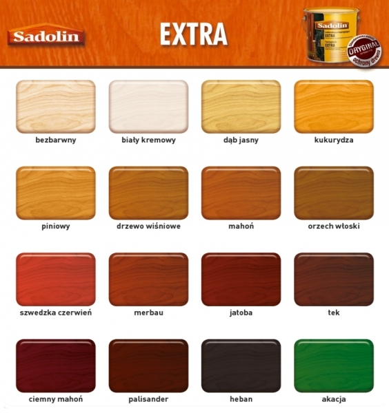Extra to nowoczesna lakierobejca impregnująca przeznaczona do zabezpieczania drewna na zewnątrz. Tworzy bardzo trwałe, półmatowe powłoki, wysoce odporne na działanie wszystkich czynników atmosferycznych oraz grzybów pleśniowych. Dzięki nowoczesnym żywicom dodatkowo wnika w drewno, zabezpieczając je od wewnątrz, co zapewnia trwałość ochrony aż do 8 lat. Nie łuszczy się, co ułatwia późniejszą renowację powierzchni pomalowanych Sadolinem Extra. Polecana jest w szczególności do fasad i domków drewnianych, okien, drzwi, mebli ogrodowych, płotów itp.